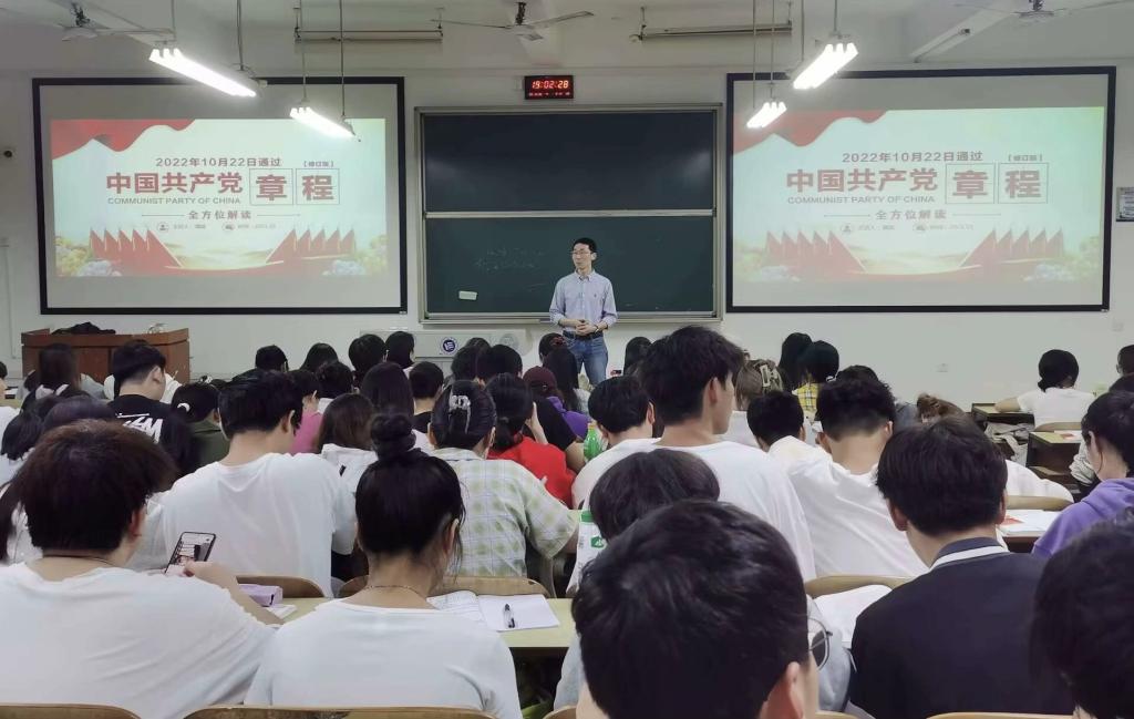 2023年10月26日,湖南工程学院管理学院在主校区D201教室开展以“党章党规党纪”为主题的党课培训。本次党课培训由管理学院副书记谭超同志主讲,管理学院第35期100名入党积极分子全体参加。