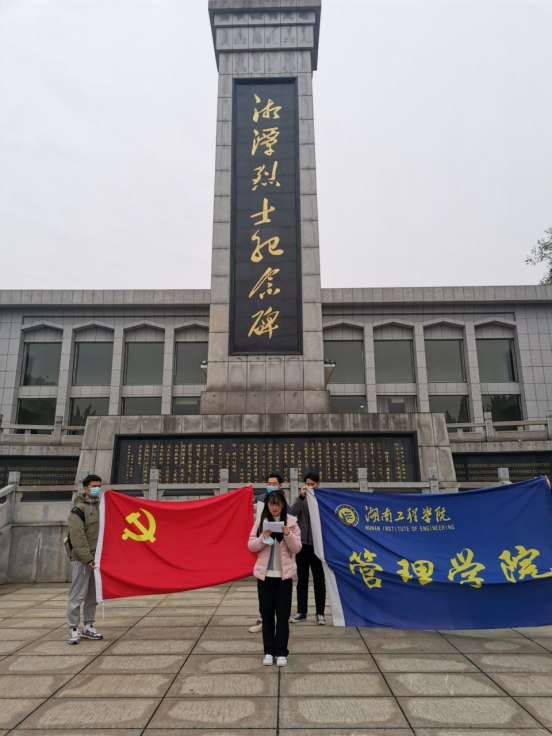 缕缕微风、绵绵细雨,诉不尽对革命烈士的无限深情,道不尽对烈士英魂的无尽哀思。我校管理学院在2020年12月17日组织全体管理学院党员和预备党员去湘潭烈士陵园进行宣誓仪式。缅怀革命先烈宣誓仪式,在支部书记周艺老师的主持下展开,中共湖南工程学院管理学院委员会党委副书记张宏也应邀参加了此次活动。