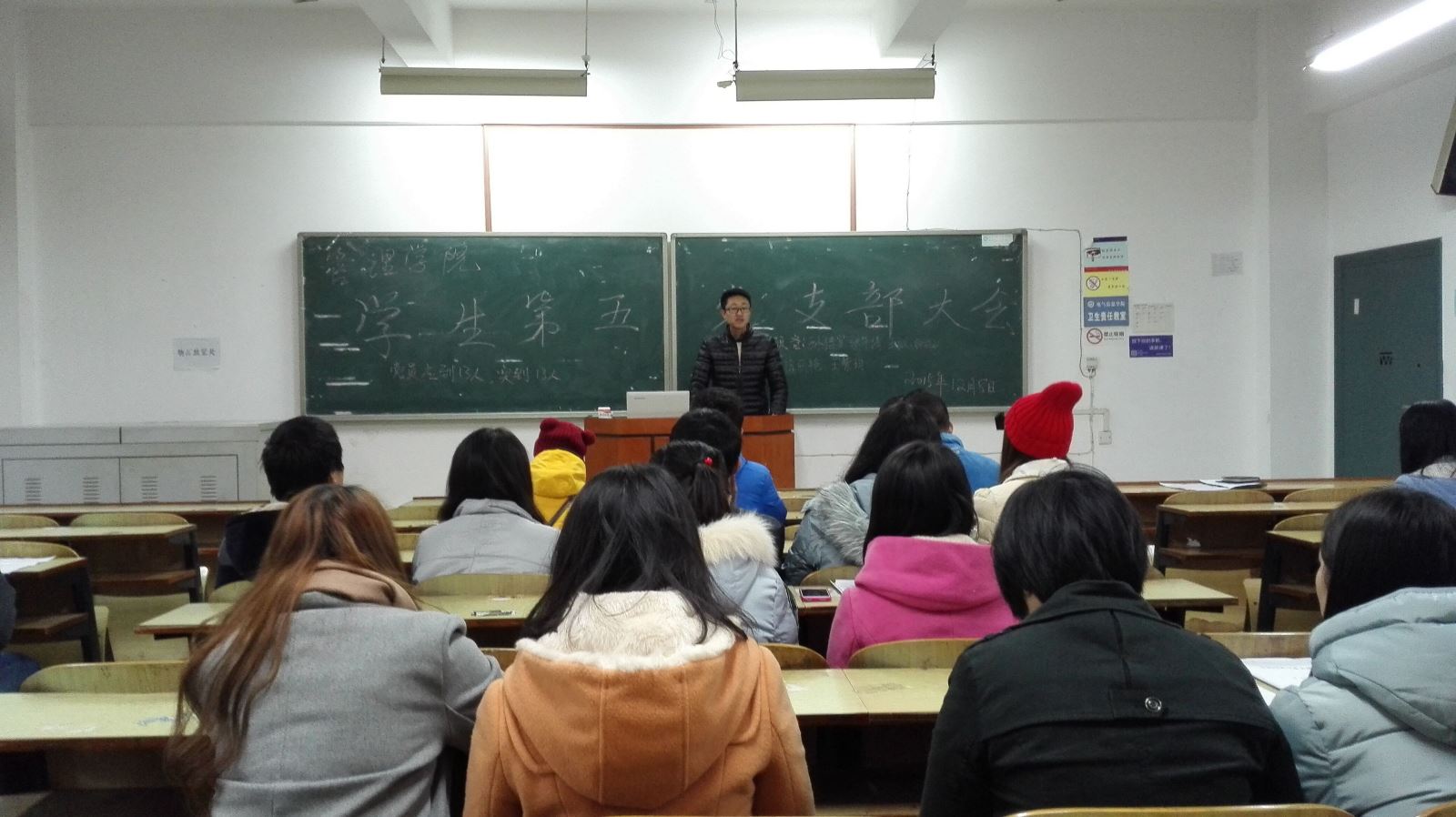 12月8日下午我院学生第五党支部2015年下支部大会伴随着国际歌于教学楼C403召开,党支部书记宋志航老师出席了会议。与会人员还包括第五党支部的正式党员,预备党员,发展对象,培养对象与积极分子代表。