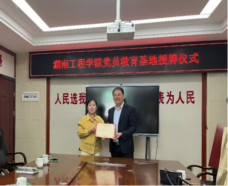 最后,管理学院张维梅副院长、教工一支部王超书记、邓述东先生共同为 “深耕一亩田”射埠镇社会服务基地举行了“湖南工程学院管理学院教工第一党支部党员教育基地”授牌仪式。管理学院聘请邓述东先生为湖南工程学院管理学院企业导师,现场张维梅副院长为邓述东先生颁发湖南工程学院管理学院企业导师聘用证书。邓述东先生表示未来将为管理学院在科技交流、营销人才培养以及乡村振兴等方面提供切实可行的帮助和支持,从而为深化应用型本科人才培养质量的提高发挥应有的作用。