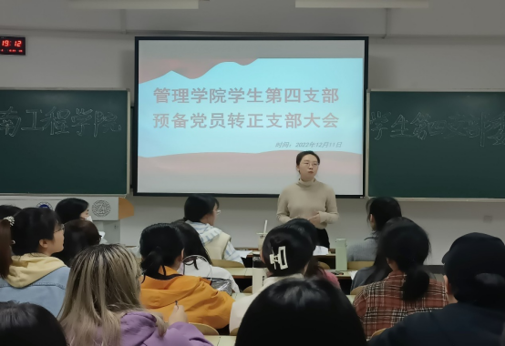 11月25日,管理学院学生第四支部在C-203召开预备党员转正大会,会议由支部书记陈景楠主持,支部全体党员参会。