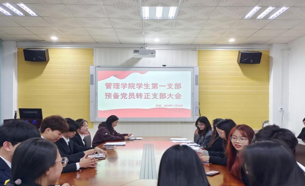 为了进一步加强党员队伍建设,推动党的事业发展,管理学院学生第一支部委员会于2023年11月20日在F104召开预备党员转正大会。会议由支部书记李林同志主持,支部全体党员和预备党员参加了此次会议。
