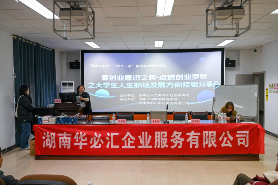 12月15日,由湘潭市岳塘区人力资源和社会保障局主办,管理学院与湖南华必汇企业服务有限公司承办的“源来好创业”“六个一百”系列创业服务行动经验分享会在湖南工程学院主校区F510成功举办。本次活动特别邀请到了拥有丰富职业经历的诸雪兆先生,为市场营销专业学子带来了一场干货满满的分享会。