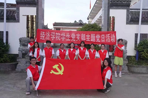 图为学生党支部党员在官溪村委会前合影