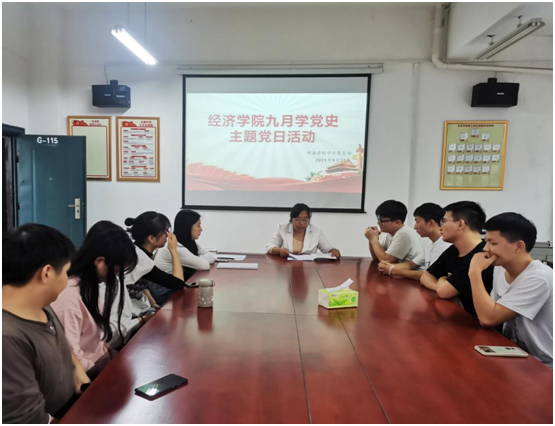 为进一步了解党的历史,加强学生党员对党的认识,2021年9月27日13:00点,经济学院学生党支部在教学楼G-115开展了以“凝心聚力学党史 砥砺前行开新局”为主题的党日活动,全体学生党员参加,会议由支部书记李军花主持。