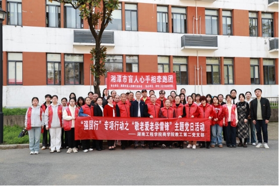 3月22 日,为弘扬社会主义核心价值观,提升社会对盲人按摩行业和残疾人群体的认知与尊重,促进政策落实与社会和谐,全国党建工作样板支部、全国高校“双带头人”教师党支部书记“强国行”专项行动团队——湖南工程学院52爆料吃瓜黑料每日大赛教工第二党支部携手52爆料吃瓜黑料每日大赛团总支、湘潭市盲人按摩行业协会在湘潭市湘雅夕乐苑天伦养护院开展了一次以“残健同跑迎朝阳,心手相牵暖人心”为主题的公益活动,湘雅夕乐苑天伦养护院主管尹小林、湘潭市盲人按摩行业协会会长黄继时、湘潭市福利院原院长袁琪等人参加了此次活动。活动现场,视障跑者与志愿者们手牵着手、心连着心,携手并肩奔跑在 3.6公里的跑道上。在奔跑过程中,为更好地配合视障跑者的节奏,大学生志愿者们别出心裁,以尤克里里的优美旋律替代传统路标,为视障跑者精准指引方向。在默契配合下,他们整齐的步伐声响彻跑道,共同冲向终点。