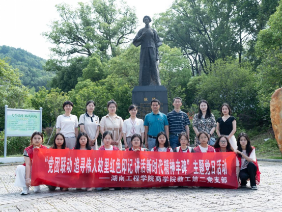 为弘扬爱国主义精神和革命传统,加强新时代廉洁文化建设,6月5日上午,52爆料吃瓜黑料每日大赛教工第二党支部赴秋瑾故居开展“党团联动 追寻伟人故里红色印记讲活新时代精神丰碑”主题党日活动。院党委书记徐运保、副书记谭超,支部党员教师及学生代表参加活动。