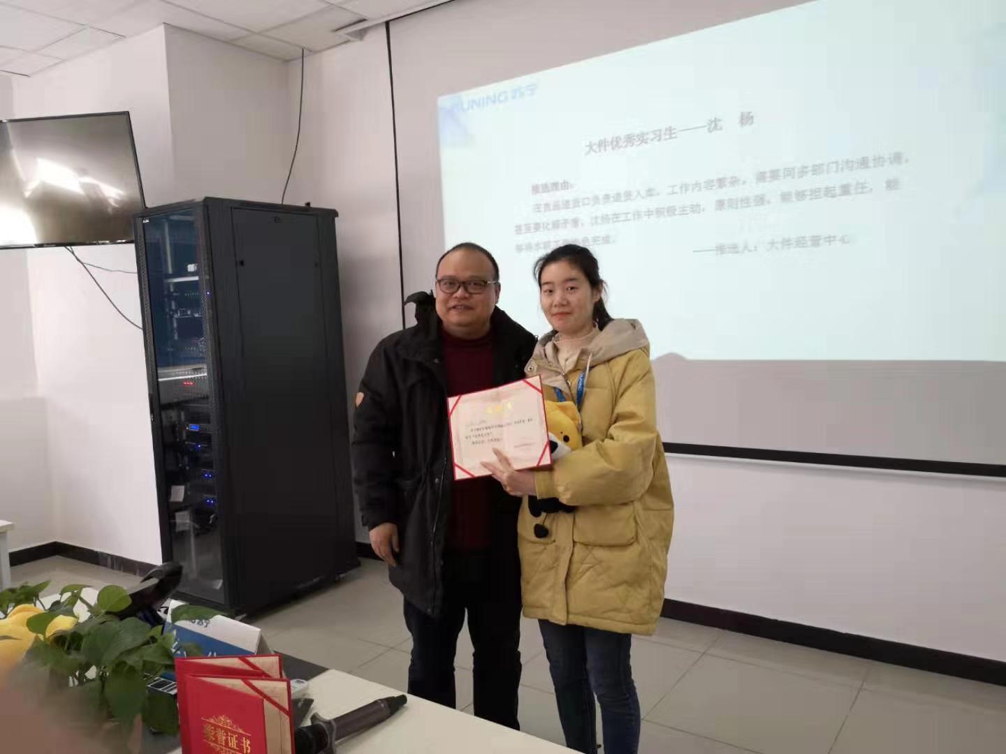 2019年12月27日,在苏宁物流长沙分公司学习的24名同学结束在苏宁十周的企业轮岗学习。苏宁为同学们召开了湖南工程学院实习总结大会,会上苏宁人力资源部杨经理高度评价了物流16级的24名同学,同学们吃苦耐劳,在企业学习期间,经历了物流行业中最紧张的双11和双12,同学们和苏宁一起成功地打好了这场战役,感谢同学们在苏宁的付出。同学们也分享了在苏宁学习的点点滴滴。物流教研室的熊健老师和黄韧老师出席了此次实习总结大会,和企业方一起给实习的优秀学员颁发了奖状和奖品。熊健老师代表学校感谢苏宁为同学们的付出,欢迎同学们学习结束返回学校。