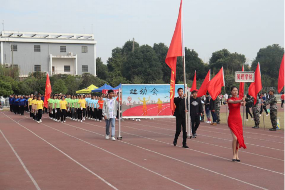 2020年11月5日,湖南工程学院秋季运动会在主校区田径场如期举行,赛场艳阳高照,管理学院方阵的同学们昂首挺胸,朝气蓬勃地向主席台走来,舞着三色的扇子,整齐划一。跳着青春的舞蹈,散着肆意的光芒。“管理英才,继往开来,管院雄风,谁与争锋”的口号回荡在赛场的上空。开幕式后,运动会正式开始。