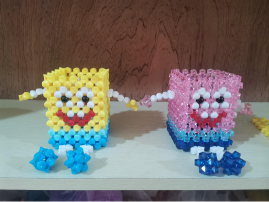 “不积跬步,无以至千里;不积小流,无以成江海。”一个个还没手指大的珠子构成了精美的而又有点可爱的海绵宝宝纸巾盒。成品呈现出来,大家发出惊叹欢呼,这是被精美的成果所折服的欣喜,同时这也是作品完成后的轻松舒适。