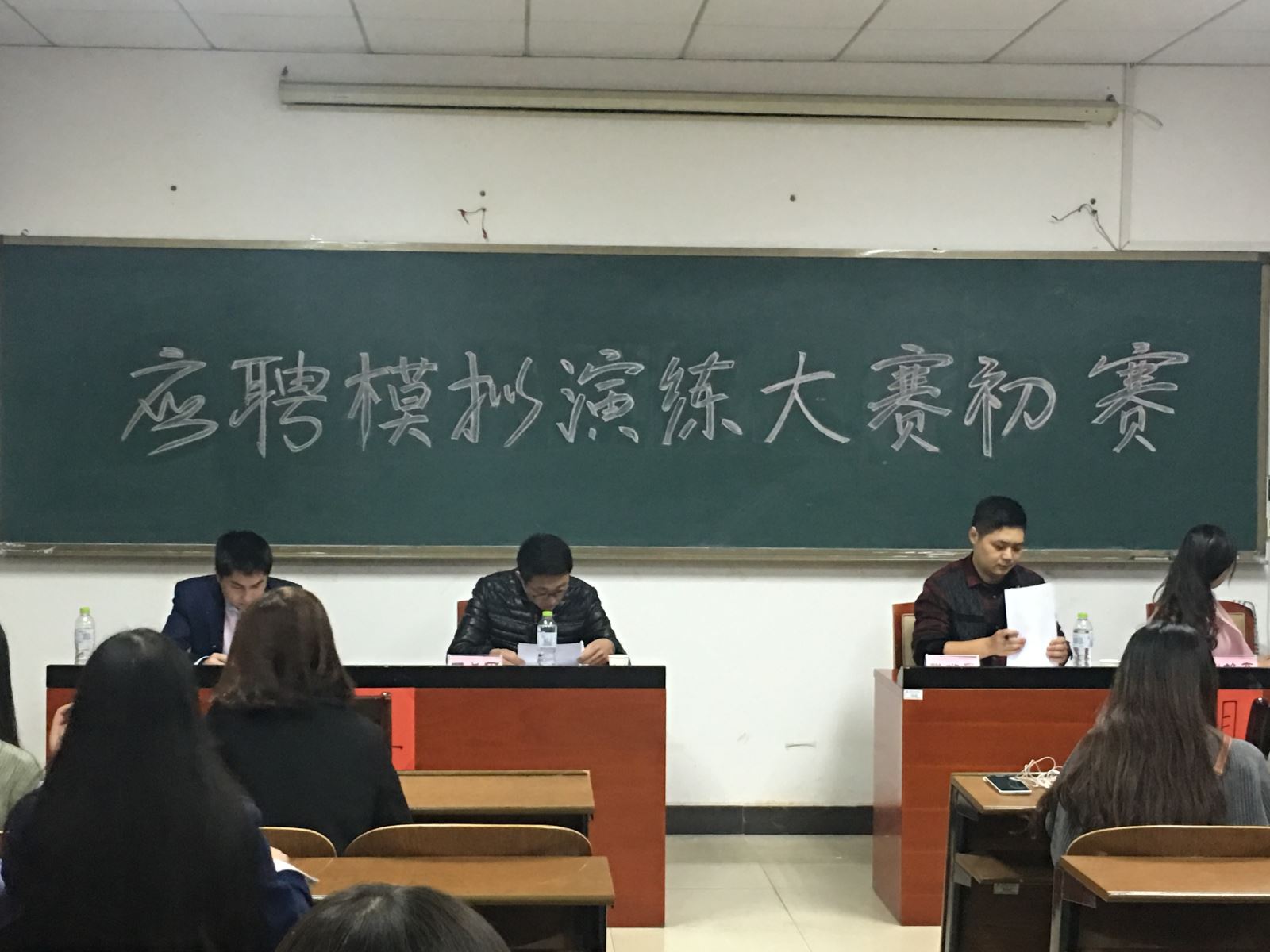 11月10日,由湖南工程学院管理学院组织部、就业部联合举办的应聘模拟演练大赛初赛在新校区教学楼G505准时进行。邀请到的评委分别是:金健乳业湘潭地区总代理廖建新,金健乳业股份有限公司营销部经理戴尚昊,湖南省“自强之星”王长雨和上届应聘模拟演练大赛亚军谢雄奇,面试对象为参赛选手。