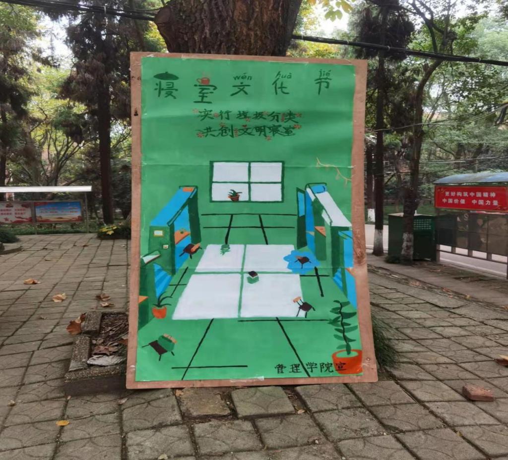 本次寝室文化节的主题为“实行垃圾分类,共创文明宿舍”,因此管理学院将垃圾分类贯彻落实到每一个宿舍,让每一位学生都能了解到垃圾分类的重要性。