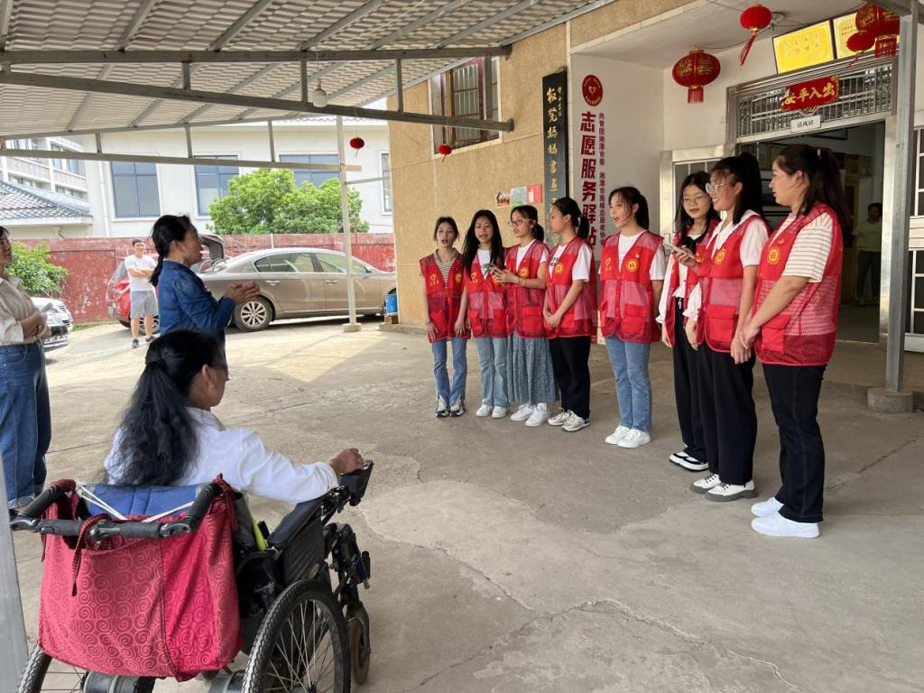 活动伊始,陈灿给全国道德模范、全国优秀共产党员“板凳妈妈”许月华赠送玫瑰花,刘喜梅给板凳妈妈赠送果篮并向板凳妈妈介绍了来访人员。随后,来访一行人在原湘潭市福利院副院长袁琪的带领下参观板凳妈妈书画工作室,袁琪向众人讲述板凳妈妈的个人事迹,她重点讲述了板凳妈妈送英雄儿子赖明智当兵、赴非洲马里维和的故事,志愿者们听完这些故事以后更加敬佩板凳妈妈。参观完毕后,陈灿代表志愿者发言,她表示,板凳妈妈无私奉献、爱党爱国的伟大精神是每个青年学生应该学习的宝贵精神财富。接下来,志愿者们合唱《少年》,洪亮昂扬的歌声表达了对板凳妈妈无私奉献自我的精神的敬佩。随后一行人举行折纸花活动,志愿者们将精心制作的纸花送给了板凳妈妈,并合影留念。