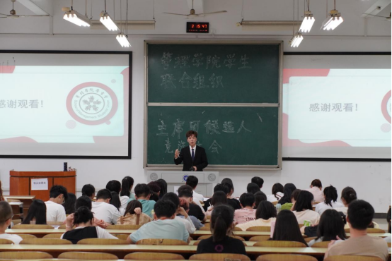 为保障管理学院学生联合组织工作的连续性,选举出一批素质过硬,有本领,有态度的团学会主席团候选人,管理学院于6月20日中午12:30举行2023-2024届学生联合组织主席团选举大会,管理学院学生工作办公室全体辅导员、各支部学生党员(含预备党员)、学生代表以及学生联合组织全体学生干部参加本次会议,宣传部部长刘彦成主持本次会议。