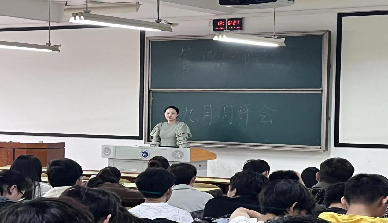 9月21日,湖南工程学院管理学院大二主校区全体同学,大三会计学各班级学号单数与其他各专业全体同学以及大四五名班委参与了会议讲评,本次月讲评会议由八名学办老师对工商管理等八个专业进行线下月讲评。会议分为常规工作通报、学生活动、共青团工作、党务工作和安全教育五个部分。