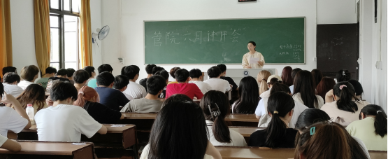 2023年6月21日,湖南工程学院管理学院大一主校区全体新生,南校区学号双数的同学,大二各专业(除会计学专业之外)班级全体同学,大二会计学专业各班级学号双数的同学,大三主要班委参与了本次的会议讲评。本次月讲评会议由谭超、黎博、包海燕、周艺、陈祎婷、陈景楠、李林、彭小玲、谭浩博九名学办老师对工商管理等八个专业进行线下月讲评。本次月讲评会议分为常规工作通报、学生活动、共青团工作、党务工作和安全教育五个部分。