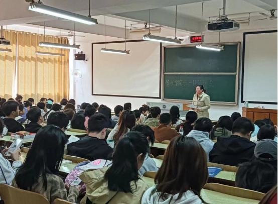 大会伊始,老师从学风、思想建设和宿舍管理等方面对本月常规工作进行总结。在学风建设方面,学风建设小组成员们尽心尽力清查各班级课堂到课率,并多次为同学们组织与学习有关的活动,引领学习氛围,也得到各位同学的积极配合。在思想建设方面,学院积极引导学生逐渐形成更完善的思想价值观,且不断提高他们的思想觉悟和素质。在宿舍管理方面,宿舍管理员每周实行多次线下清查,同学们尽力维持好宿舍卫生,同时在学校的领导下,各项宿舍安全问题也有所改善,为学生营造了良好的生活环境。