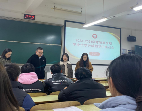 会议伊始,张维梅会议上强调学分的重要性并提醒大家认真做好准备,并提出在本学期里期末一定要有改变、有计划、有行动——改变学习的态度、方法、计划,将学习落到实处。接着,参会学生逐个深入分析了本人学分缺损原因,在学习方面有哪些困难,并表示今后一定吸取教训,转变学习态度,把所欠学分补上来,争取顺利完成学业。老师们聆听了同学们的真实心声,结合每位学生的具体情况,提出了改进学习状态的良好建议,并给予勉励,希望他们早日摆脱学业困境。