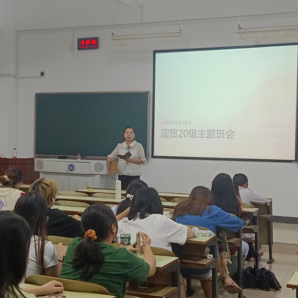 2022年9月26日,经济学院各班组织同学在新校区主教学楼召开安全主题班会,班会由各班班主任主讲。