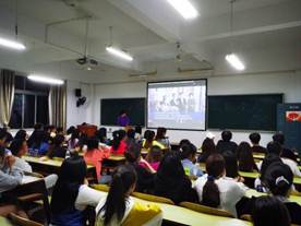活动开始,在各班团支书的组织下,同学们观看了习近平总书记视察清华大学时的讲话视频,以及学习了许达哲书记在全省各界青年五四讲座的讲话内容,从中学习到要坚定对马克思主义的信仰、对中国特色社会主义的信念、对中华民族伟大复兴中国梦的信心以及对以习近平同志为核心的党中央的信赖,从当下做起,从小事做起,勇于创新创造。随后,各班进行了团歌齐唱,团支部干部带领同学们重温入团誓词,重习团员义务,感受作为团员的光荣。最后,团支部号召同学们积极参加“红色旋律,青春之声”歌手大赛,在歌唱红色经典中感悟革命先辈精神的力量。