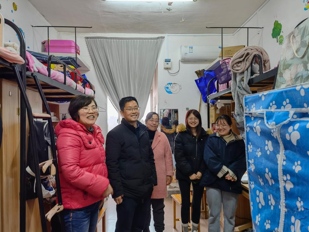2021年3月3日下午,经济学院党总支副书记曾贵、学办主任戴晶晶及学生辅导员李军花走访了学生寝室。