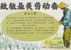活动前期,学院通过官方微信公众号、班级群等多渠道进行宣传动员,吸引了全院学生踊跃参与,共征集作品50份。参赛学生紧扣“致敬最美劳动者,弘扬时代劳动魂”主题,从环卫工人、医护人员、教师、科研工作者等不同职业的劳动者入手,用绚丽的色彩、生动的笔触、新颖的排版,创作出一幅幅主题鲜明、创意十足的作品。这些作品融入了同学们对劳动者的真挚敬意,展现劳动者的奉献精神与时代风采。经过专业评委评分,最终评选出一等奖2名、二等奖3名、三等奖5名。
