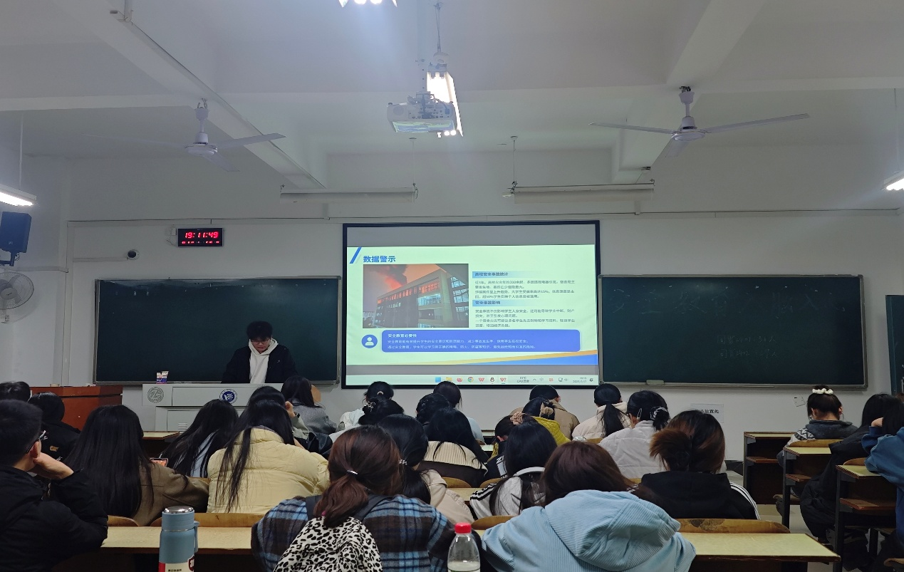 在互动问答环节,同学们踊跃回答,有同学分享自己在生活中遇到的网络诈骗经历,提醒大家不要随意点击不明链接;还有同学讲述家庭火灾隐患排查的小常识。这种互动不仅加深同学们对安全知识的理解,还让大家意识到安全事故就在身边,必须时刻保持警惕。为强化安全教育的实践性,助力学生提升应急能力,还特别设置了情景模拟环节,生动的演练让抽象的安全知识转化为可操作的行动指南。此外,学院还发起了“安全隐患随手拍”活动,鼓励学生用镜头记录身边的安全隐患并提出整改建议。