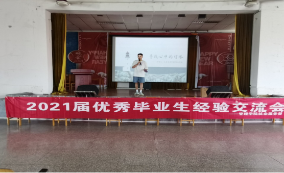 2021年6月1日上午,由湖南工程学院管理学院就业服务部主办的以“分享经验,继往开来;领略风采,造就辉煌”为主题的2021届优秀毕业生经验分享会在南校区第一教学楼四楼活动中心正式举行。此次分享会是管理学院法制与诚信教育月系列活动之一。