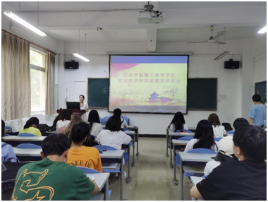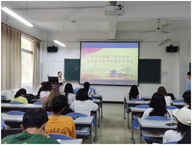 为了让勤工俭学学生提高其合理安排理论学习与实践技能时间分配管理能力,经济学院于2022年6月6日12:10在主教学楼G-113举行了勤工俭学学生劳动教育和岗前教育培训会。本次培训会由经济学院辅导员刘佳馨主讲,学院全体勤工俭学学生参加。
