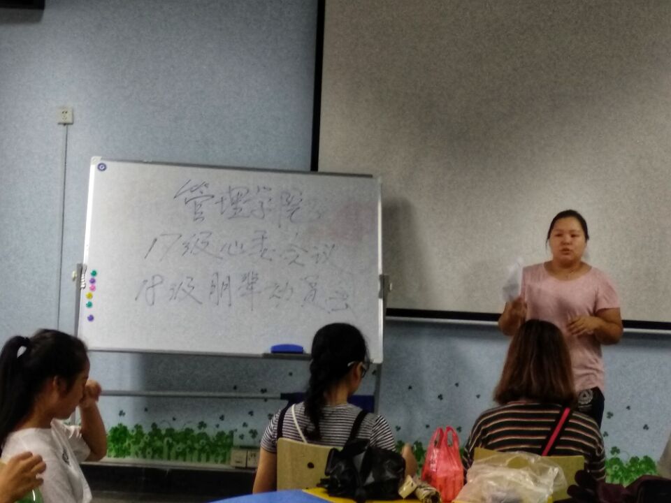 管理学院于6月21日中午在新校区心理健康教育与咨询中心的团体辅导室开展了管理学院17级心委会议暨18级朋辈动员大会。此次会议参与人员有管理学院心理部全体成员、17级各班心理委员。心理干事单艳艳老师围绕心委的日常工作展开叙述,心委是连接班级心理活动的纽带,应注重发现学生中出现的各种心理异常现象,给予力所能及的帮助,并及时向心理部、学校心理健康辅导教师反映,能够帮助有心理困难的同学及时前往心理咨询室接受心理辅导,以便加强对接受咨询的学生跟踪及反馈,使其得到尽快解决。同时阐述了竞选朋辈的相关要求,朋辈应从心理部成员以及部长团之间进行选拔,且有具体的人数要求,使相关工作实施方便、更易推广;朋辈应具有积极向上、待人和善、与人亲近的性格特征,同时朋辈人员需要掌握一定的心理学知识和心理咨询技巧,乐于服务同学,综合素质高。