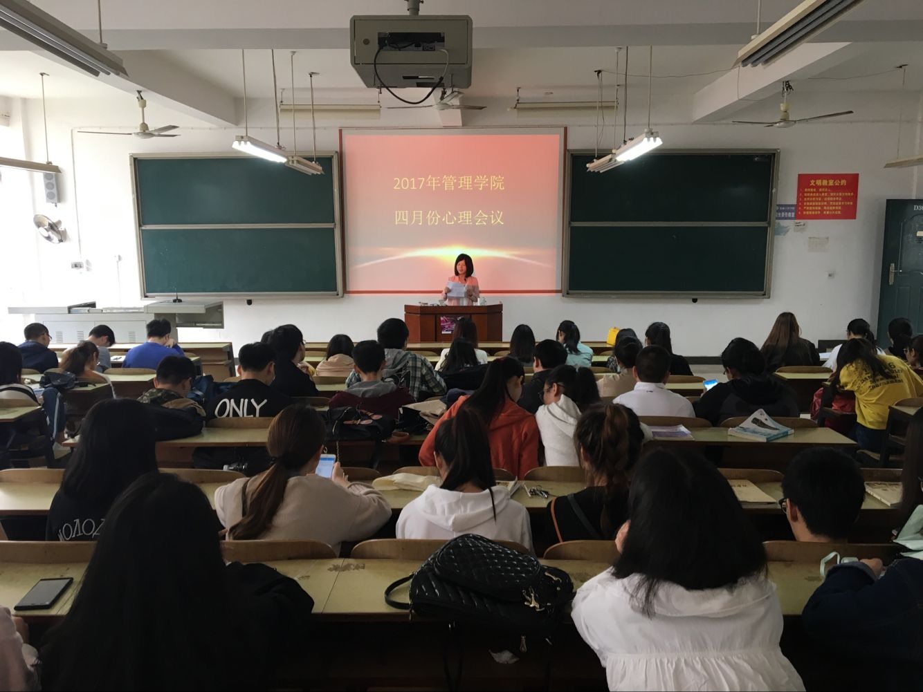 4月17日中午12:20,管理学院于新校区教学楼D302召开了管理学院2017年第二次心理联络员会议。会议由我院学生工作办公室主任罗荃老师召开,2014级寝室联络员、心理委员和心理部成员参加了此次会议。