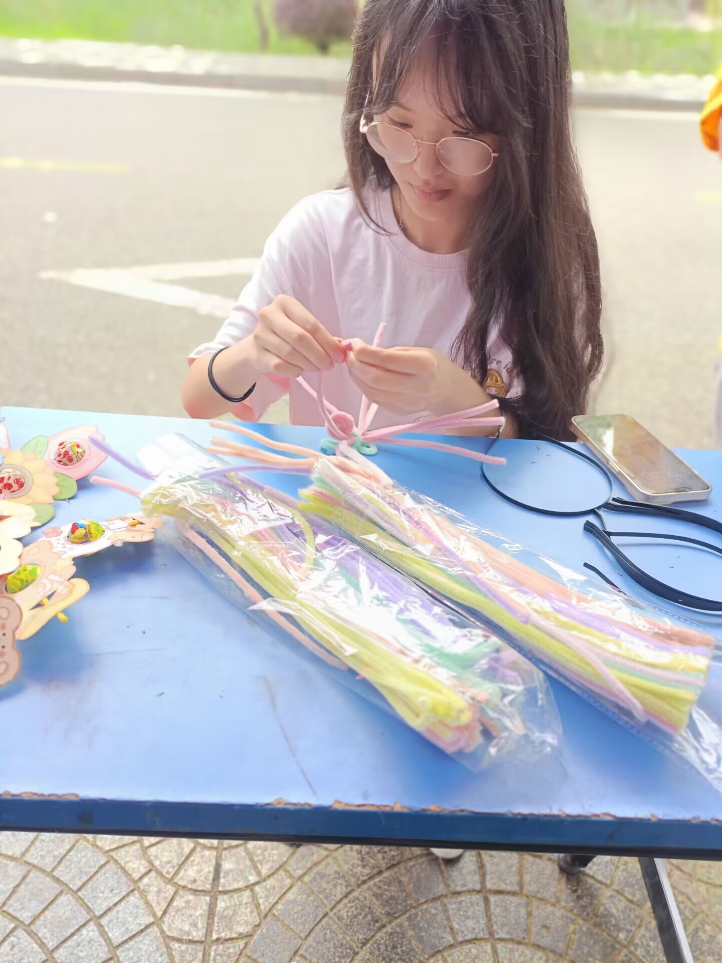 阳光明媚,微风和煦,上午十点整,活动正式开始,心理部部长龙侣热情地向前来了解活动的同学详细介绍了此次活动的流程及意义,心理部为同学们准备了帆布袋、透明扇子、扭扭棒等可供手绘的物品以及各式各样的精美小礼品,参与活动的同学选择物品进行创作,根据自己的喜好,在这些物品上绘制独一无二的图案。无论是扇叶的涂鸦、环保袋的彩绘,还是扭扭棒的创作,每件作品都展示了参与者独特的创意。参与者或两两为一组共同完成创作,或独立思考,用笔画下专属于自己的独特印记。在一片欢声笑语中,一件件独具特色的作品在同学们的手中完成。完成作品后,同学们可以免费带走自己创作的涂鸦作品,并得到一份精美礼品作为对他们参与和创造力的奖励。活动过程中,同学纷纷在“与爱同行,拒绝焦虑”心情分享墙上留言,用笔书写下对自己和家人朋友的美好祝福,很多同学为正在准备考研的学长学姐送去了祝福,祝愿他们能“长风破浪会有时,直挂云帆济沧海”,小小的便签上凝聚着同学们的期待,传递着热烈而真挚的青春力量。在活动现场的帐篷旁还设有与心理健康知识有关的信息展板,展板上展示了一些心理健康小知识、情绪调节的小技巧和游戏等,展板上还印有学校心理咨询与服务中心的联系电话以及预约方式,可供同学们自由浏览,这些展板的设计旨在让同学们在边玩边学中了解和学习心理健康知识,进一步提高心理健康水平。