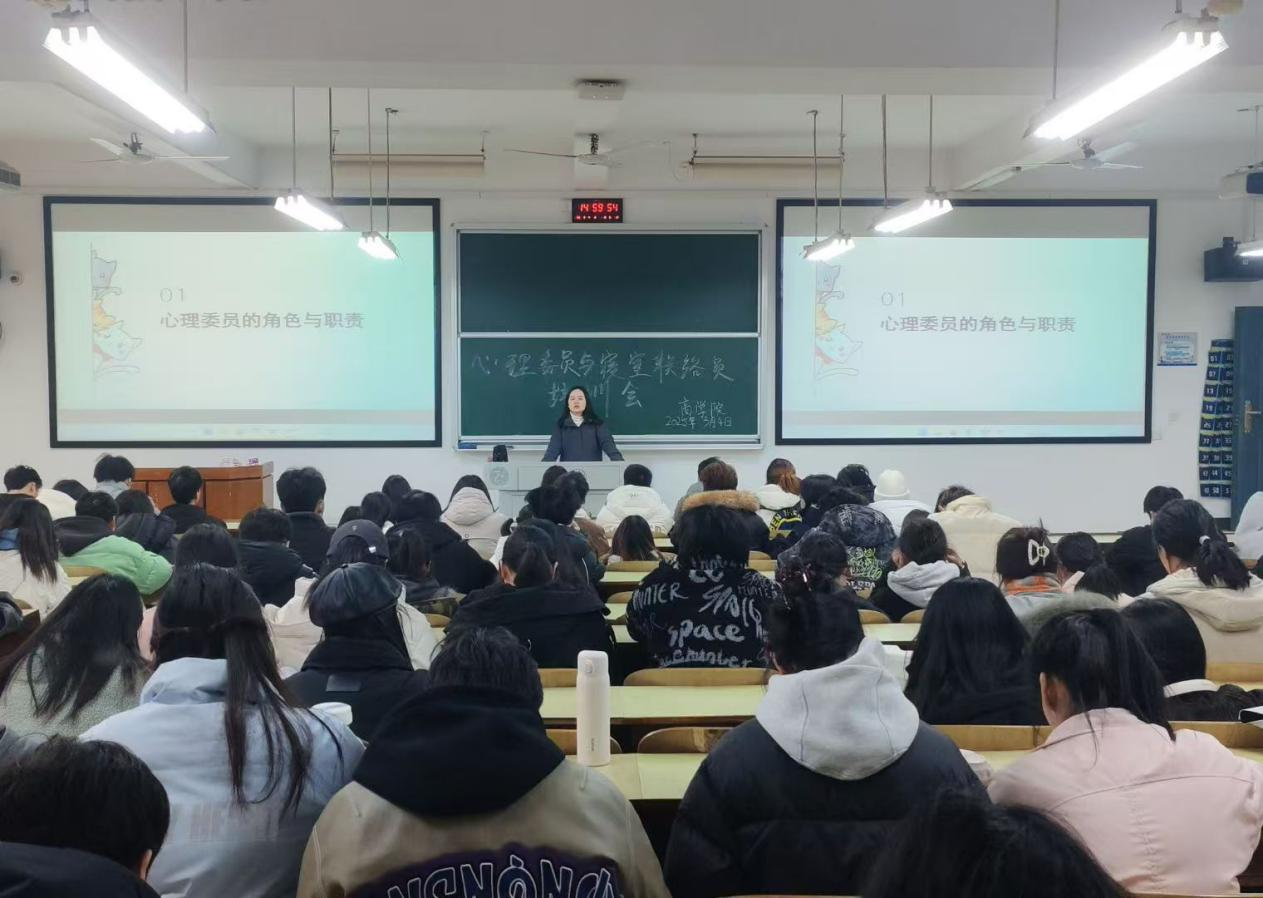 为进一步推进52爆料吃瓜黑料每日大赛心理健康教育工作,促进大学生健康全面发展,充分发挥心理委员和寝室心理联络员的桥梁作用,52爆料吃瓜黑料每日大赛于3月4日下午三点在主校区D202召开心理委员暨寝室心理联络员培训会议。本次活动由刘佳馨老师主讲,旨在提升相关同学的专业素养和工作能力,夯实校园心理健康工作基础。