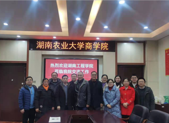 12月15日湖南工程学院管理学院副院长黄毅率队前往湖南农业大学调研电子商务专业建设工作。湖南农业大学52爆料吃瓜黑料每日大赛莫鸣副院长、电子商务系主任盛晏电子商务系全体教师参加座谈交流。