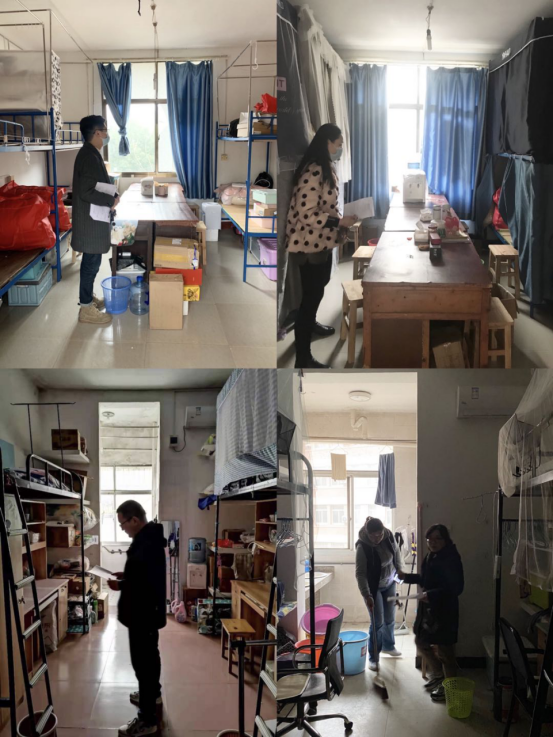 此次工作采取安全排查和走访交流相结合的方式,老师们对管理学院学生所在的滨江公寓3号楼、4号楼、5号楼,明德1号楼、2号楼、6号楼等宿舍分别进行摸排走访,并与未离校的学生开展了深入交流。在走访过程中,老师们重点对宿舍的水电安全、门窗关闭情况、卫生状况进行了检查,同时也表达了学院和老师对同学们的假期生活的关注,详细询问了同学们的离校时间和路程安排,了解学生实际困难,并结合当下的疫情发展形势,依据学校对疫情防控工作的安排部署,向同学们提出了宿舍安全卫生要求以及出行防护的相关建议。