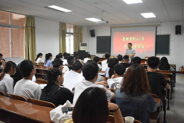 9月12日星期二下午4点30分,为落实2017届新生入学报道工作,湖南工程学院管理学院在G505成功召开"2017年迎新动员大会",会议钱祖煜副书记主持,辅导员老师、2017级新生班主任,学生会全体成员、下班党员以及朋辈心理辅导员参加此次会议。