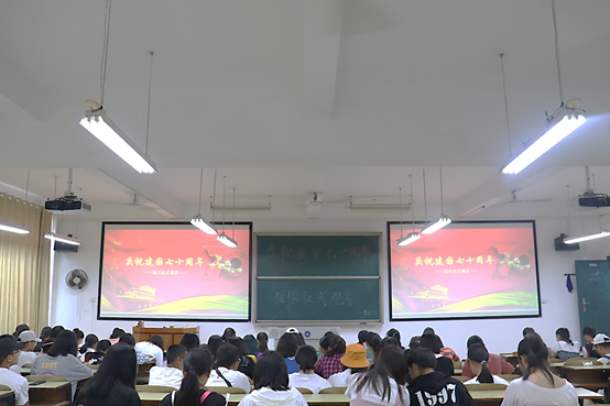 为庆祝中华人民共和国成立70周年,湖南工程学院管理学院特以共同观看国庆大阅兵的形式,为祖国庆生。今日阅兵时长约80分钟。阅兵编59个方(梯)队和联合军乐团,总规模约1.5万人,各型飞机160余架、装备580台套,是近几次阅兵中规模最大的一次。期间,我们看到了阅兵式、分列式、徒步方阵、装备方队、空中梯队等,无一不向世界展现当今中国之繁荣富强。