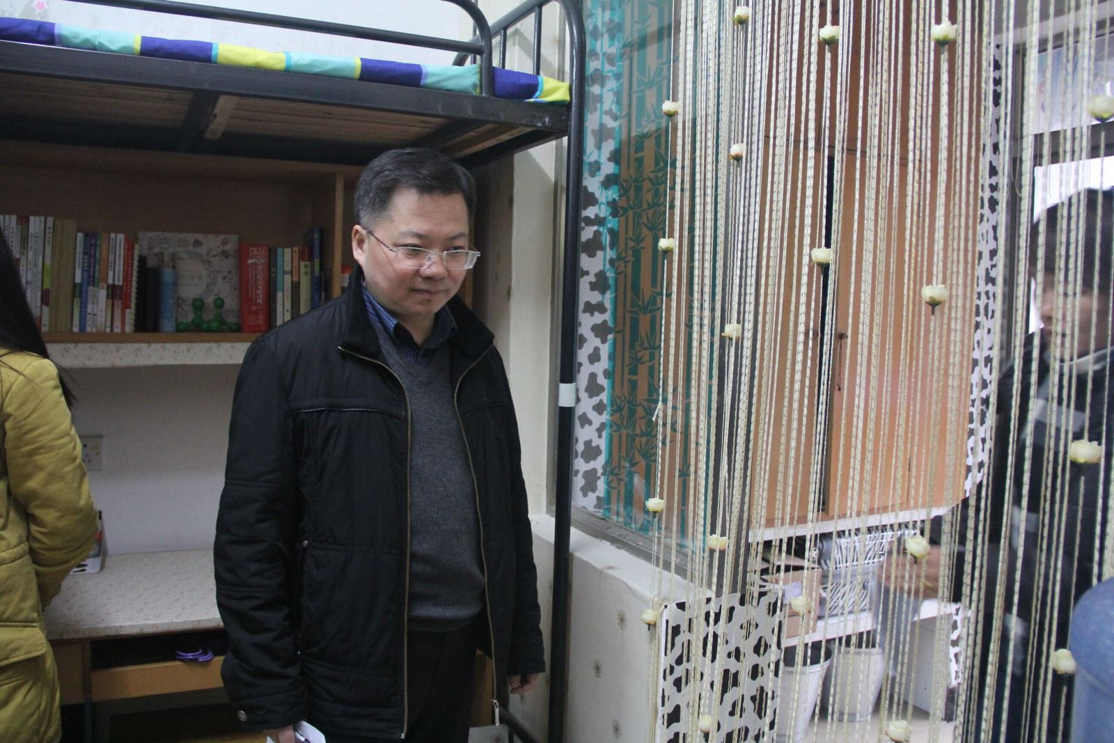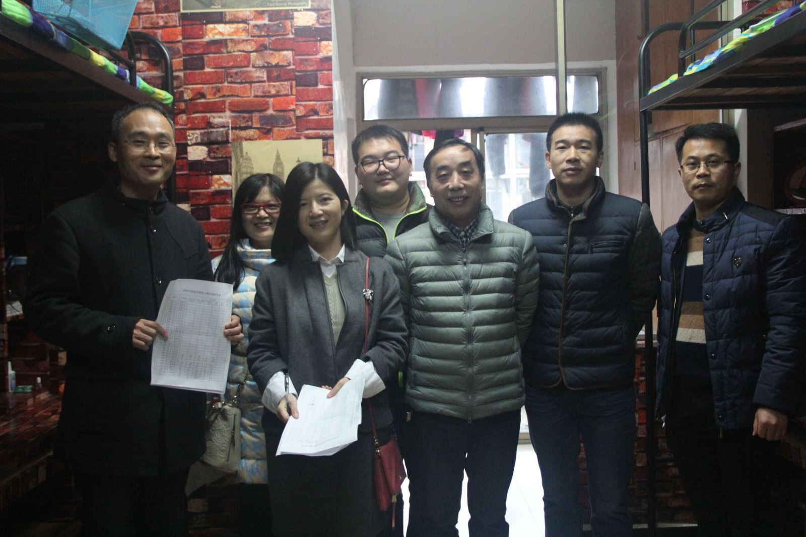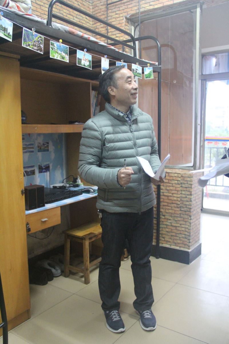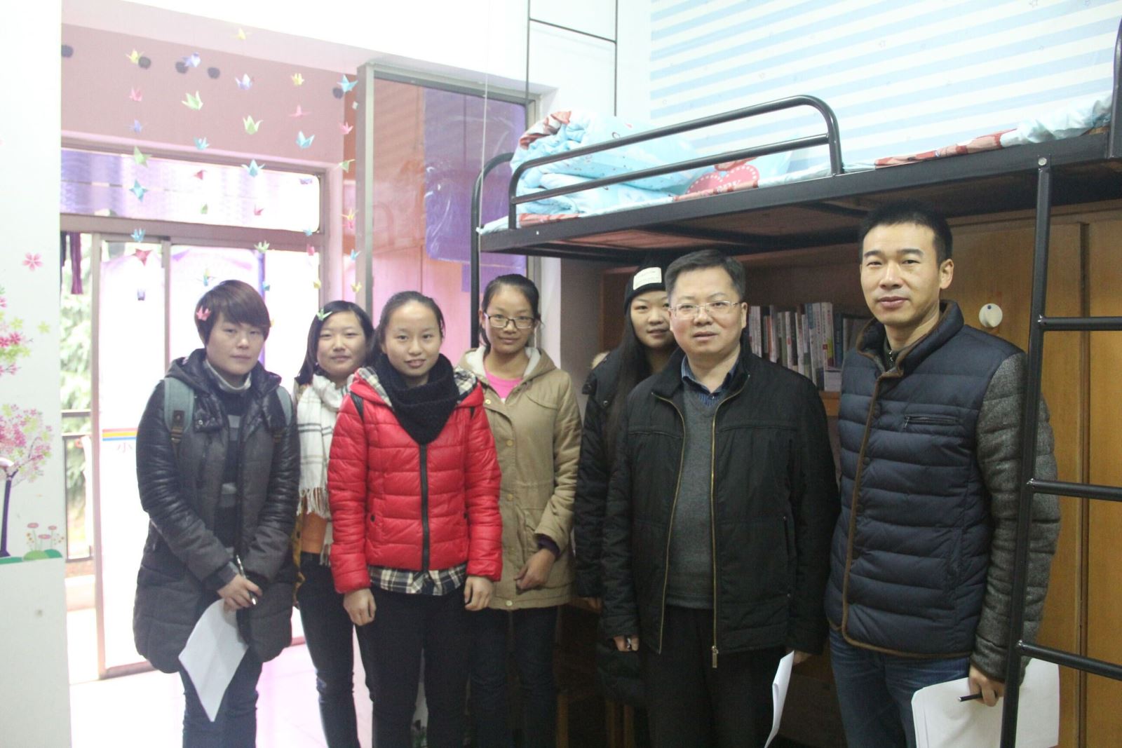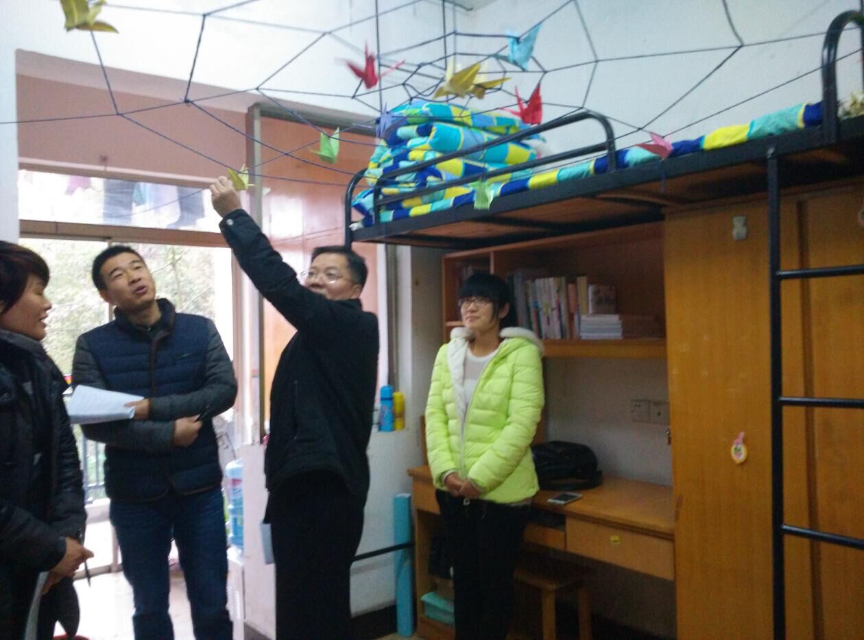 管理学院评委团在学生寝室留影