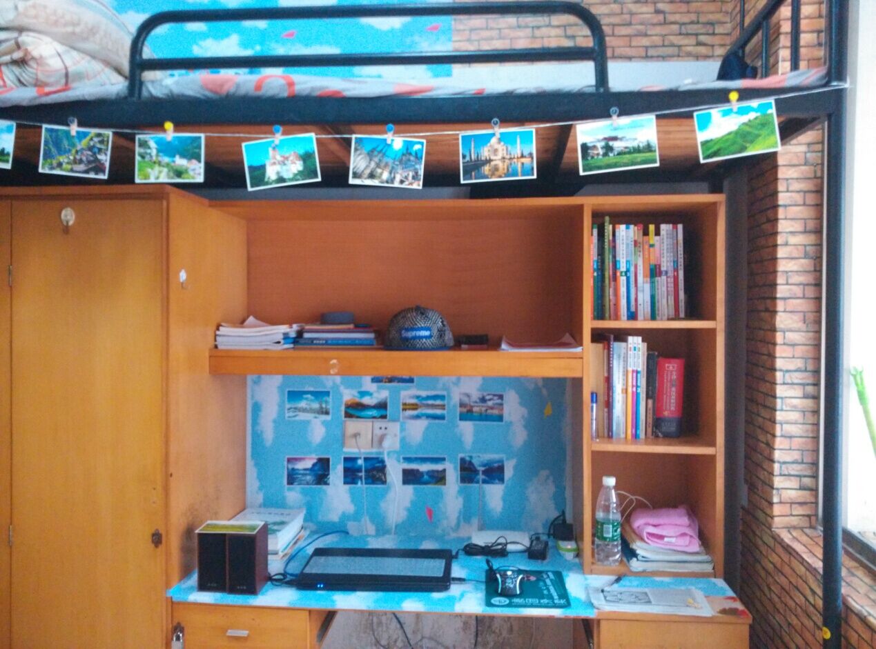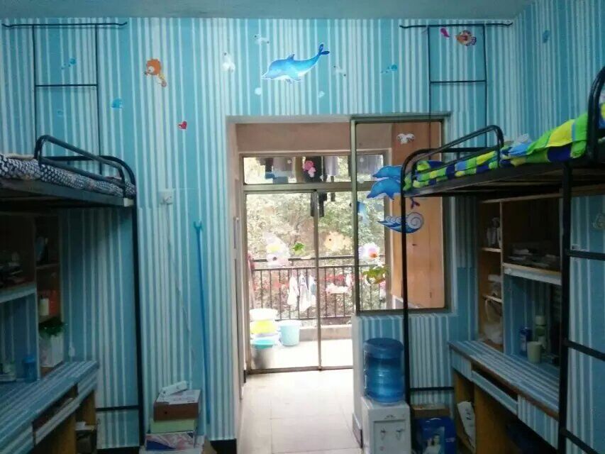 整个寝室仿佛置身于一片海底世界中,唤起了我们对海洋的想象。评委们说:“这个寝室装扮得十分有创意,值得学校借鉴。”