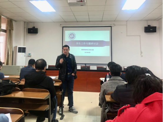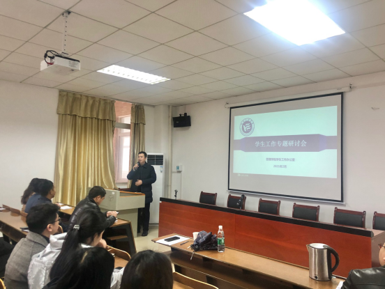 2月26日上午,管理学院在G505召开学生工作专题研讨会。副校长张小刚、管理学院院领导、学办主任、全体辅导员、班主任参加会议,会议由学院党委书记余博主持。