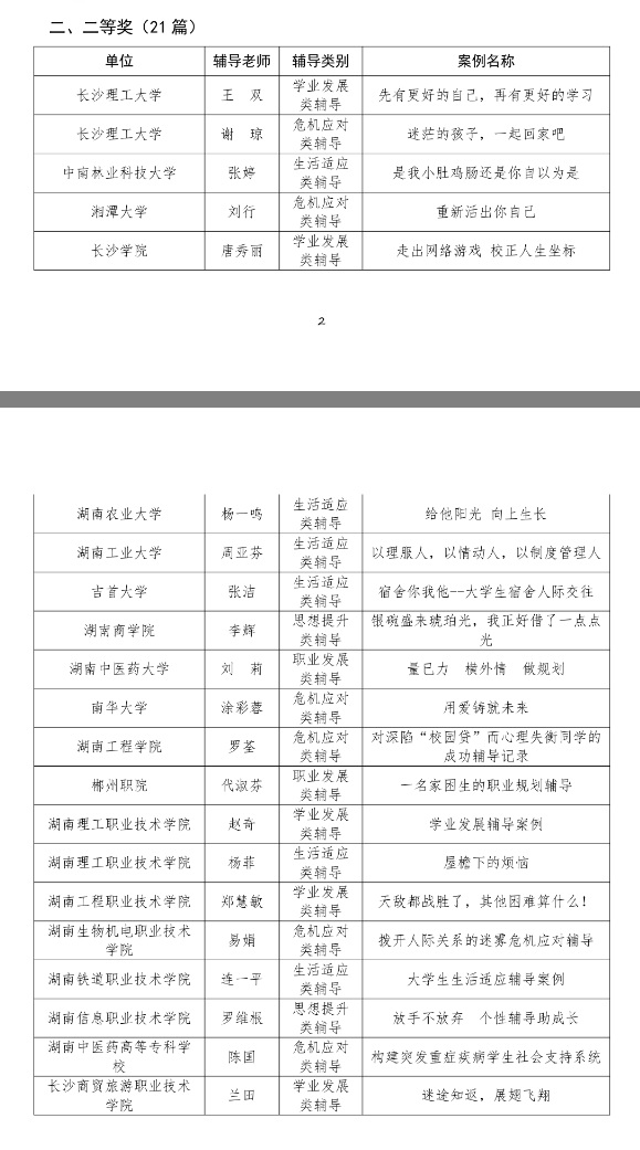 湖南省高校大学生心理健康教育研究会将在第十一次年会现场对获奖者进行表彰并发放奖励。我院辅导员将继续深入开展成长辅导工作,为我校大学生的成长成才做出更多贡献。