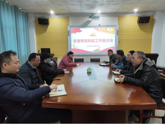 2020年12月22日上午,管理学院召开统战工作座谈会,钱祖煜书记主持,民主党派代表参加,本次会议为做好学院下一阶段统战工作打好了基础。