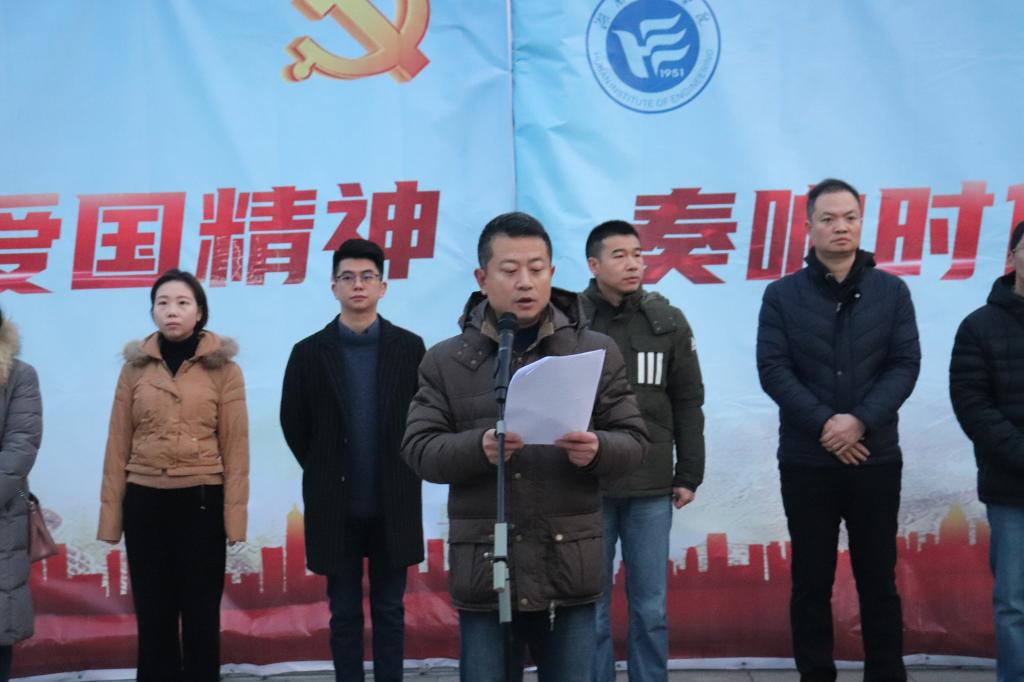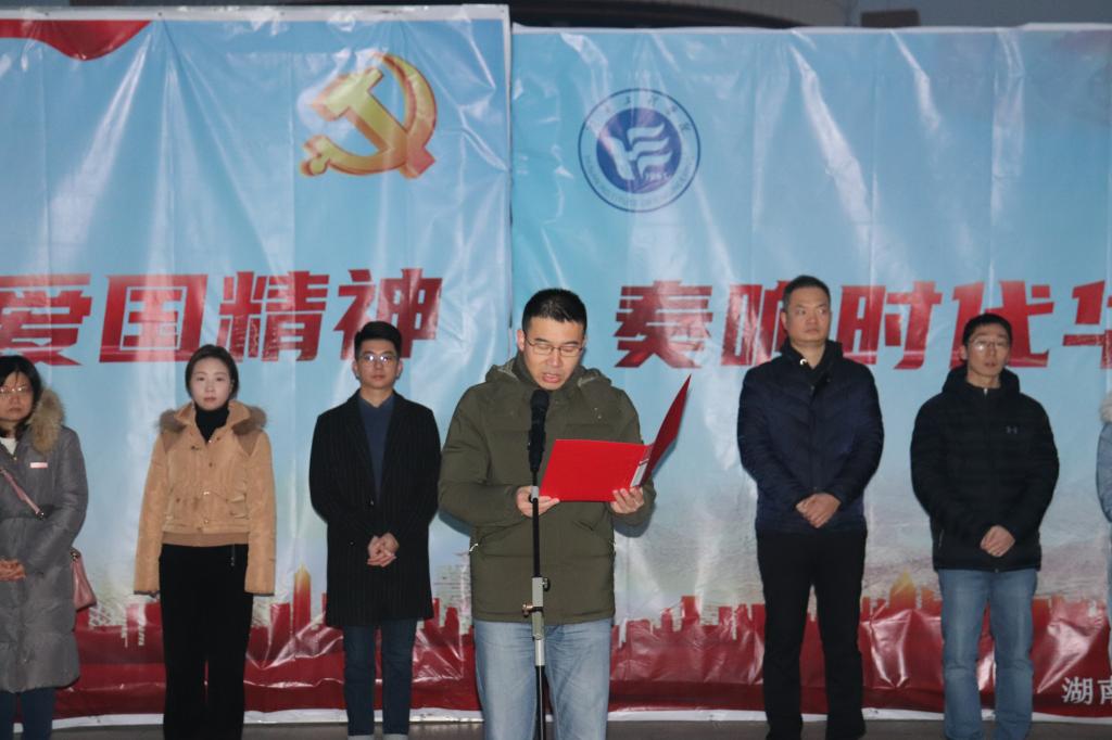 12月21日清晨,湖南工程学院管理学院在新校区知行广场隆重举行“弘扬爱国精神,奏响时代华章”主题升旗仪式。管理学院院领导、辅导员及18、19级学生参加,仪式由学院党委副书记张宏主持。