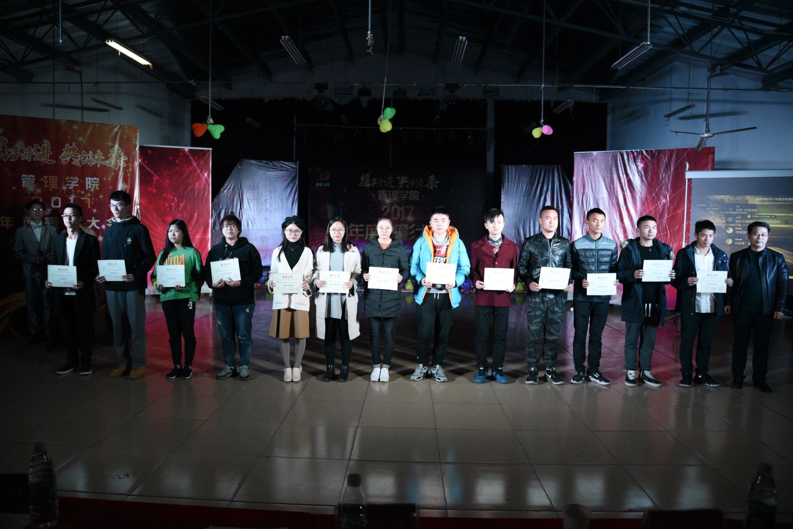 春花秋实,岁月更迭,转眼间又经历了难忘的一年,回顾这一年,管理学院的学子们取得了大量优异的成绩。为了总结和表彰2017年管理学院的优秀班集体、团队和学生过去一年的表现突出,推动新一年各项工作顺利开展,加强管理学院的凝聚力,2017年12月26日晚,湖南工程学院管理学院“‘携手并进,共创未来’2017年度学生表彰大会”于新校区活动中心隆重举行。