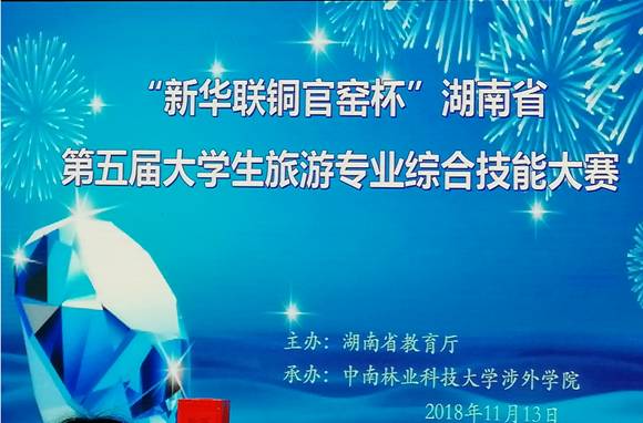 2018年11月13-14日,第五届湖南省大学生旅游专业综合技能大赛全省总决赛在中南林业科技大学涉外学院举办,本届大赛为期两天,由管理学院张维梅老师带队指导,旅游管理专业16级徐天宇、周再芳、李奕颖三名同学组成的学校代表队参与此次决赛。经过为期两天的专业比拼,我校三位选手表现优秀,荣获团体三等奖。