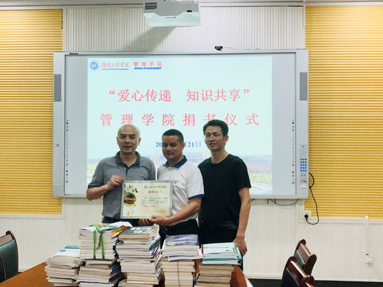 为响应湖南工程学院“爱心传递,知识共享”的捐书倡议,丰富我校图书馆馆藏资源。6月21日下午,管理学院在F104举行捐书仪式,徐运保院长代表学院向校图书馆正式转交学院所捐赠图书。