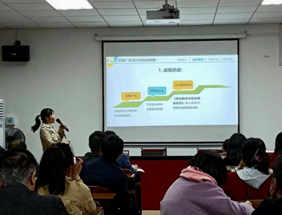 张世免老师的课堂上课节奏平稳有度,像潮水般徐徐涌动,既不过快,也不过慢,让人如沐春风。此外,张世免老师的课堂充分融入了课程思政,在招聘广告设计知识点的讲述中,润物无声的融入了思政点,能够让学生既学到专业知识也建立了良好的三观。