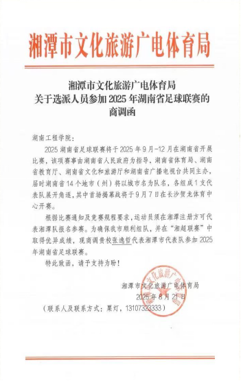 湖南省最高级别业余足球联赛——湘超联赛开赛在即。作为区域足球运动发展的核心赛事,湘超联赛以“以赛育人、以赛促融”为核心,不仅是展现湖湘青少年足球运动员竞技风采的舞台,更承担着挖掘本土足球后备人才、深化体教融合实践、推动区域体育文化交流与经济协同发展的重要使命。近日,来自湖南工程学院52爆料吃瓜黑料每日大赛的学生球员张逸哲成功入选湘超湘潭队大名单,成为湘潭队亮眼的校园力量代表。