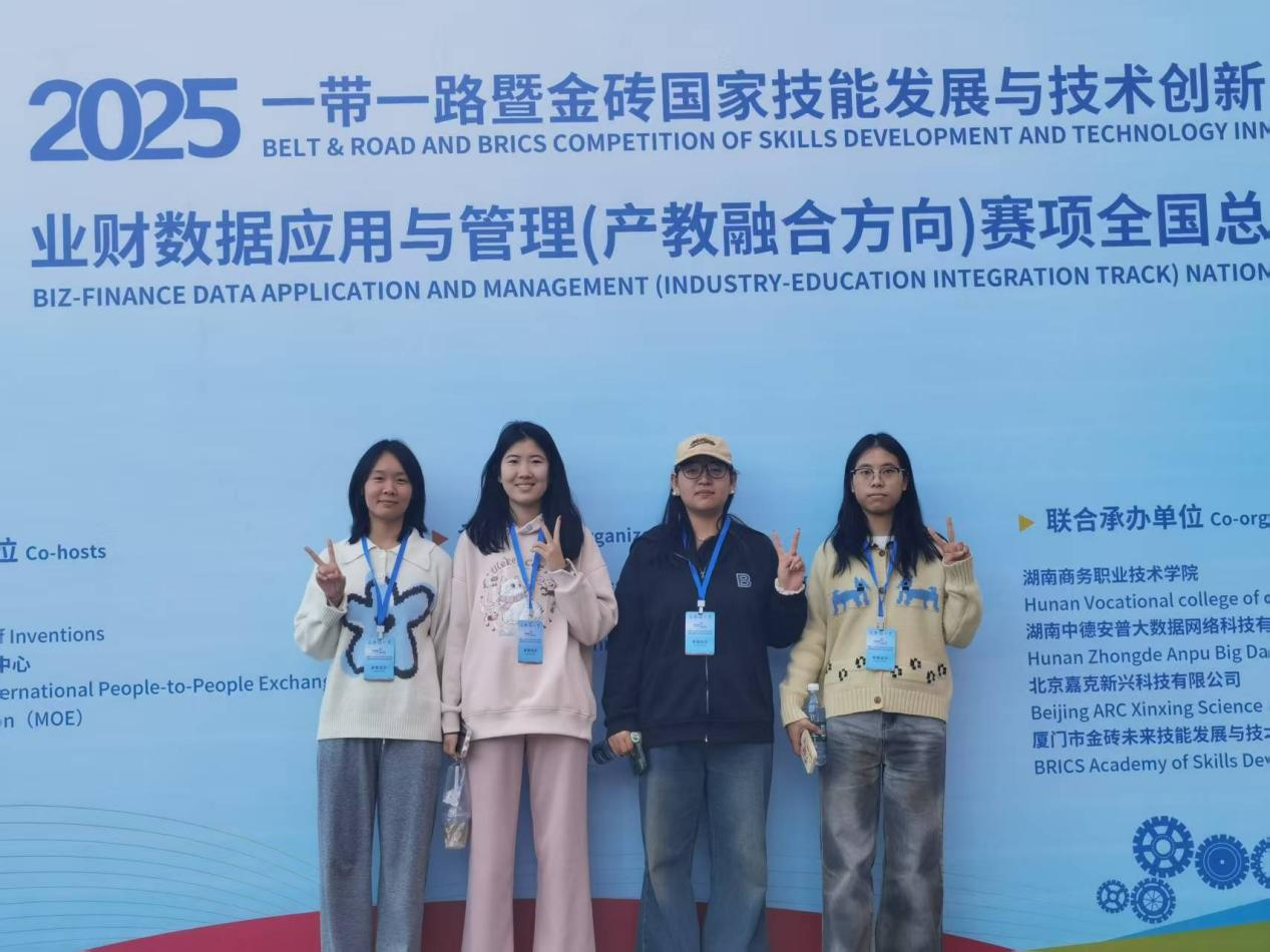11月29日,2025“一带一路”暨金砖国家技能发展与技术创新大赛业财数据应用与管理(产教融合方向)赛项全国总决赛在湖南商务职业技术学院圆满落幕。来自全国本科、高职、中职院校及相关企业的1400余名选手、400余支队伍同台竞技,湖南工程学院代表队斩获本科组一等奖。