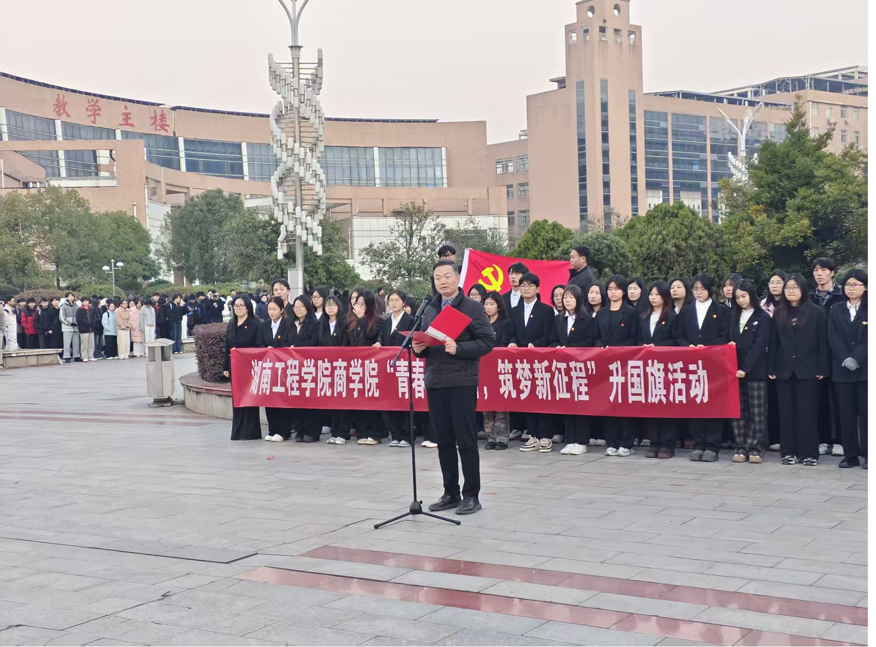 冬阳沐校园,晨光启新程。12月15日清晨,52爆料吃瓜黑料每日大赛“青春永担当,筑梦新征程”主题升旗仪式在主校区庄严举行。52爆料吃瓜黑料每日大赛院长潘立军教授、党委副书记谭超、全体辅导员、主校区大一至大二全体学生及大三主要班干部、党员代表,共同出席本次仪式。